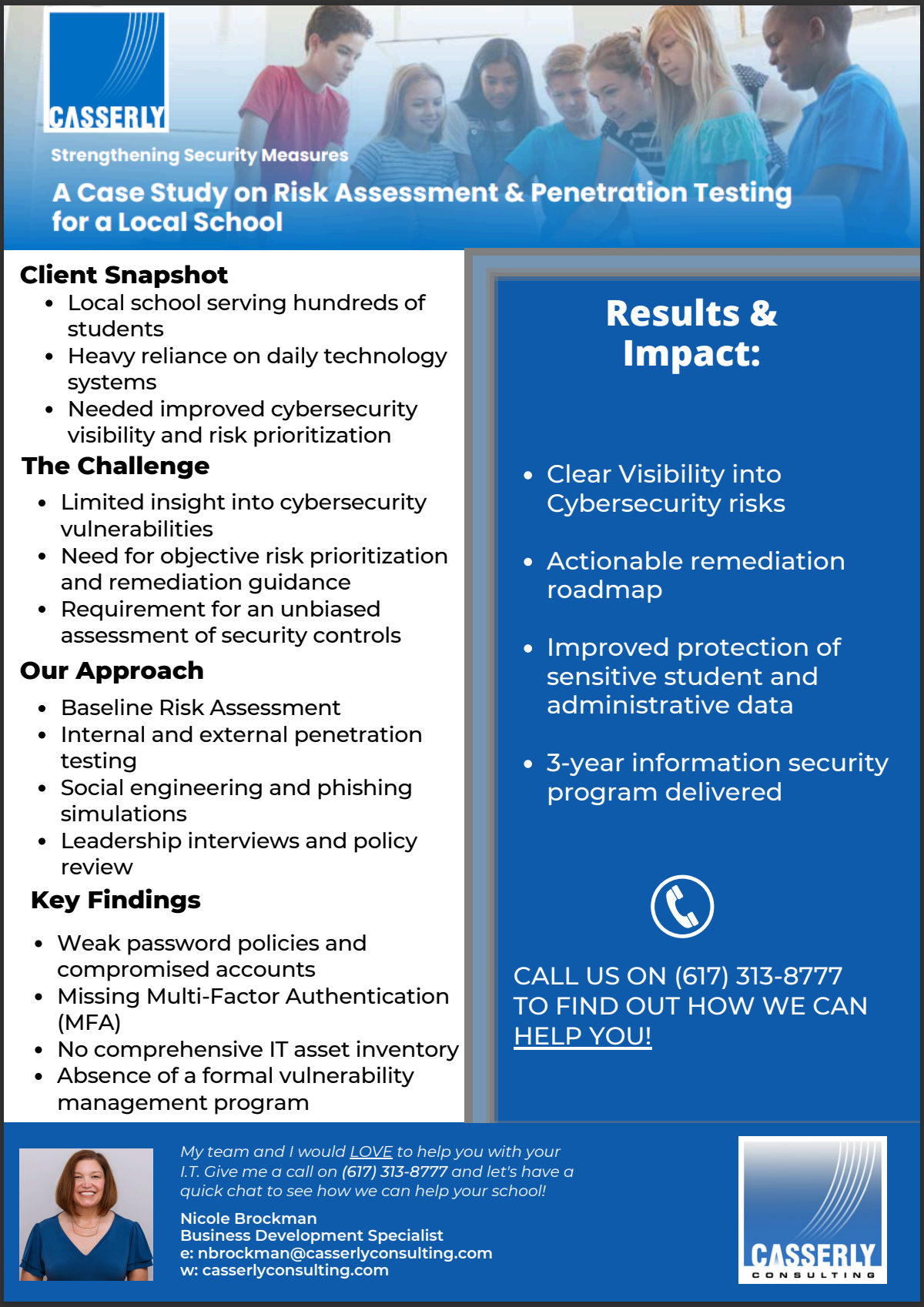 This two-page case study provides a detailed look at how a real school addressed cybersecurity risk through structured assessment and testing—what was tested, what was found, and how remediation was approached.